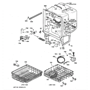 The Upper Rack is an OEM replacement part for GE dishwashers. It provides movable shelf space along the top of the dishwasher interior for washing plates, bowls, and other dishes. The shelves feature an adjustable design that accommodates various sizes and configurations of dishware. Causes of failure include normal wear and tear, accidental impacts that damage shelves or cleaning chemicals stripping away protective coatings. Symptoms of a bad upper rack can include: