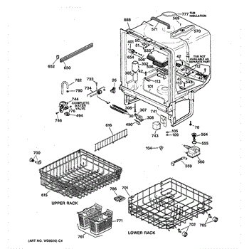 The Lower Dishrack is an OEM part for GE dishwashers. It provides a sturdy shelf for placing pots, pans, plates, and other dishware on the bottom level of the dishwasher interior. The lower dishrack supports dish loads, holding them securely in place during the wash cycles.