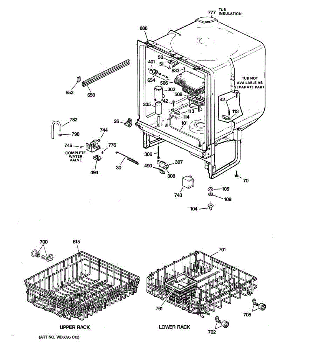 Replace a cracked, rusted, or broken upper dishrack to restore secure organization for cups, glasses, and bowls on your dishwasher's top level.