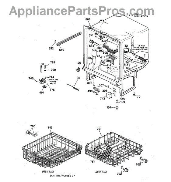 • Carries water from the inlet valve to the dishwasher tub during fill cycles
