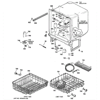 The Upper Rack is an OEM replacement part for GE dishwashers. It provides movable shelf space along the top of the dishwasher interior for washing plates, bowls, and other dishes. The shelves feature an adjustable design that accommodates various sizes and configurations of dishware. Causes of failure include normal wear and tear, accidental impacts that damage shelves or cleaning chemicals stripping away protective coatings. Symptoms of a bad upper rack can include: