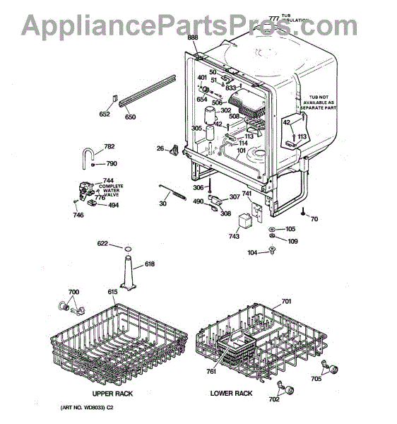 Replace a damaged upper/top dishrack to keep cups, glasses, and bowls secure and organized on the top level of your dishwasher. Restore smooth loading and dependable support when the original rack is rusted, bent, or broken.