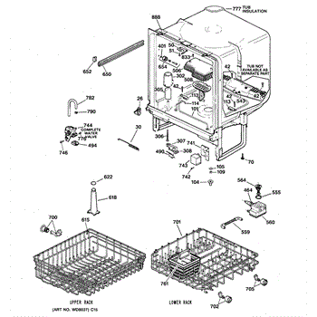 The Lower Dishrack is an OEM part for GE dishwashers. It provides a sturdy shelf for placing pots, pans, plates, and other dishware on the bottom level of the dishwasher interior. The lower dishrack supports dish loads, holding them securely in place during the wash cycles.