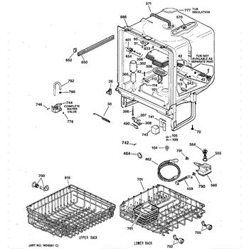The Lower Dishrack is an OEM part for GE dishwashers. It provides a sturdy shelf for placing pots, pans, plates, and other dishware on the bottom level of the dishwasher interior. The lower dishrack supports dish loads, holding them securely in place during the wash cycles.