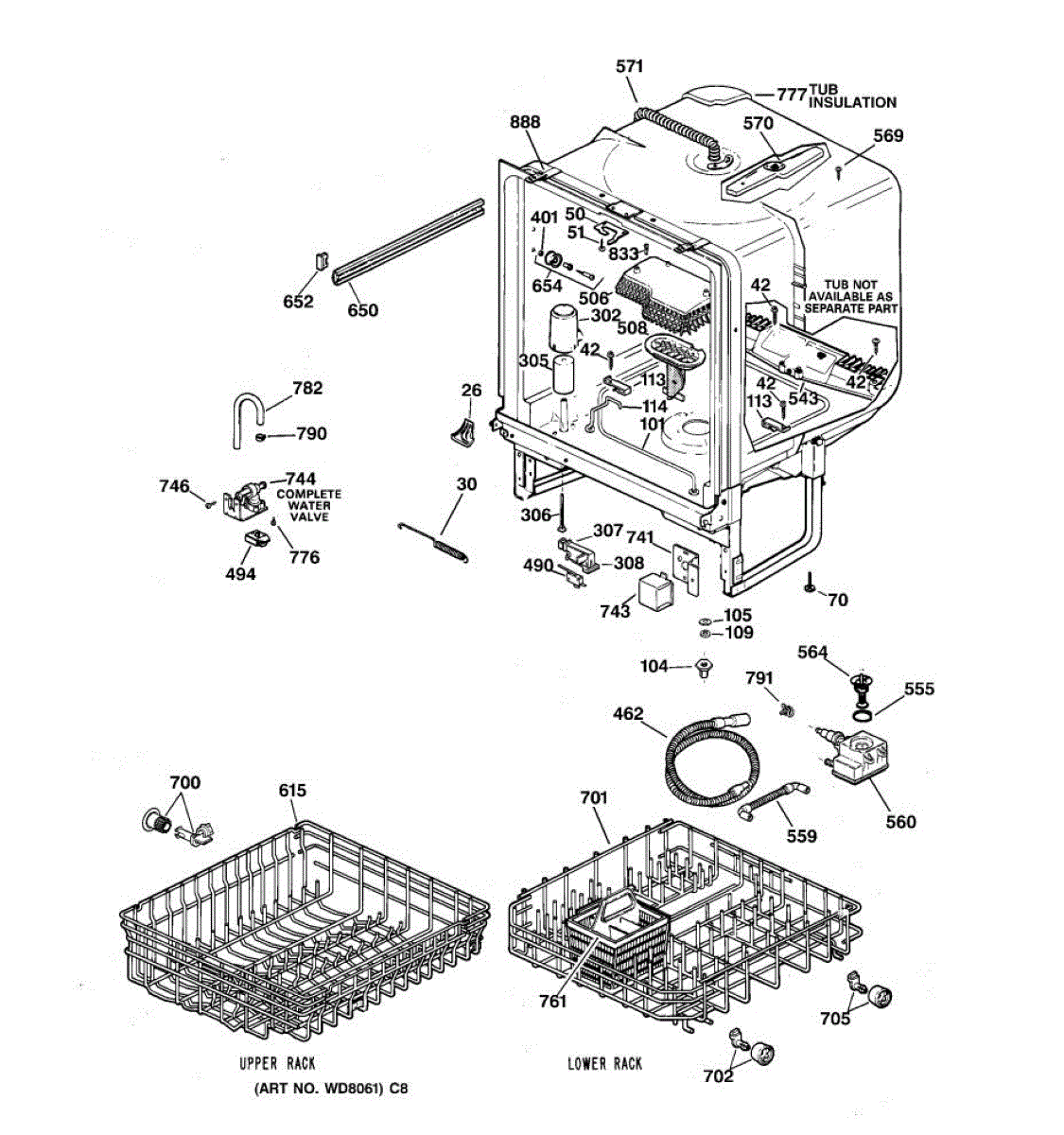 Replace a cracked, rusted, or broken upper dishrack to restore secure organization for cups, glasses, and bowls on your dishwasher's top level.