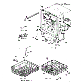 The Lower Dishrack is an OEM part for GE dishwashers. It provides a sturdy shelf for placing pots, pans, plates, and other dishware on the bottom level of the dishwasher interior. The lower dishrack supports dish loads, holding them securely in place during the wash cycles.