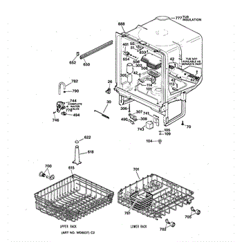 The Lower Dishrack is an OEM part for GE dishwashers. It provides a sturdy shelf for placing pots, pans, plates, and other dishware on the bottom level of the dishwasher interior. The lower dishrack supports dish loads, holding them securely in place during the wash cycles.