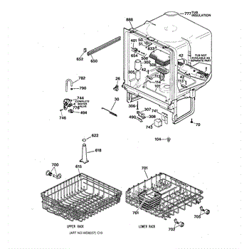The Lower Dishrack is an OEM part for GE dishwashers. It provides a sturdy shelf for placing pots, pans, plates, and other dishware on the bottom level of the dishwasher interior. The lower dishrack supports dish loads, holding them securely in place during the wash cycles.