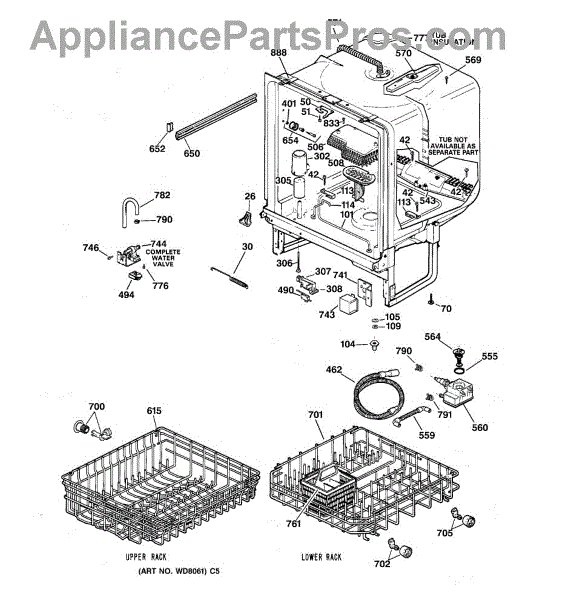 • Carries water from the inlet valve to the dishwasher tub during fill cycles