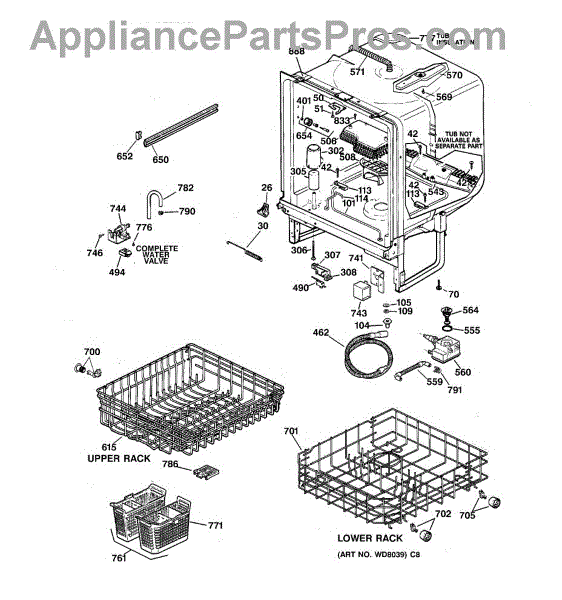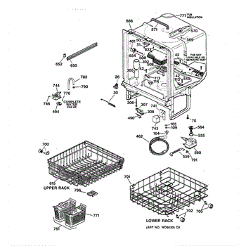 The Upper Rack is an OEM replacement part for GE dishwashers. It provides movable shelf space along the top of the dishwasher interior for washing plates, bowls, and other dishes. The shelves feature an adjustable design that accommodates various sizes and configurations of dishware. Causes of failure include normal wear and tear, accidental impacts that damage shelves or cleaning chemicals stripping away protective coatings. Symptoms of a bad upper rack can include: