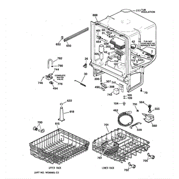 The Lower Dishrack is an OEM part for GE dishwashers. It provides a sturdy shelf for placing pots, pans, plates, and other dishware on the bottom level of the dishwasher interior. The lower dishrack supports dish loads, holding them securely in place during the wash cycles.