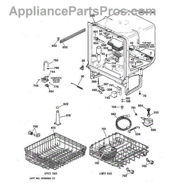 Replace a damaged upper/top dishrack to keep cups, glasses, and bowls secure and organized on the top level of your dishwasher. Restore smooth loading and dependable support when the original rack is rusted, bent, or broken.