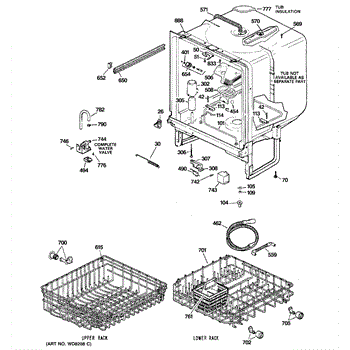 The Upper Rack is an OEM replacement part for GE dishwashers. It provides movable shelf space along the top of the dishwasher interior for washing plates, bowls, and other dishes. The shelves feature an adjustable design that accommodates various sizes and configurations of dishware. Causes of failure include normal wear and tear, accidental impacts that damage shelves or cleaning chemicals stripping away protective coatings. Symptoms of a bad upper rack can include: