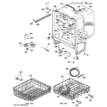 The Upper Rack is an OEM replacement part for GE dishwashers. It provides movable shelf space along the top of the dishwasher interior for washing plates, bowls, and other dishes. The shelves feature an adjustable design that accommodates various sizes and configurations of dishware. Causes of failure include normal wear and tear, accidental impacts that damage shelves or cleaning chemicals stripping away protective coatings. Symptoms of a bad upper rack can include: