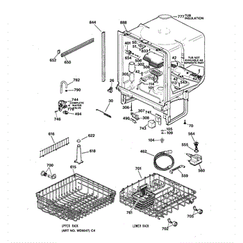The Lower Dishrack is an OEM part for GE dishwashers. It provides a sturdy shelf for placing pots, pans, plates, and other dishware on the bottom level of the dishwasher interior. The lower dishrack supports dish loads, holding them securely in place during the wash cycles.
