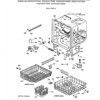 The Lower Dishrack is an OEM part for GE dishwashers. It provides a sturdy shelf for placing pots, pans, plates, and other dishware on the bottom level of the dishwasher interior. The lower dishrack supports dish loads, holding them securely in place during the wash cycles.