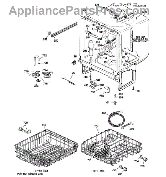 The Upper Rack is an OEM replacement part for GE dishwashers. It provides movable shelf space along the top of the dishwasher interior for washing plates, bowls, and other dishes. The shelves feature an adjustable design that accommodates various sizes and configurations of dishware. Causes of failure include normal wear and tear, accidental impacts that damage shelves or cleaning chemicals stripping away protective coatings. Symptoms of a bad upper rack can include:
