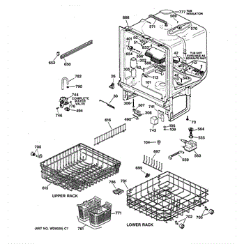 The Upper Rack is an OEM replacement part for GE dishwashers. It provides movable shelf space along the top of the dishwasher interior for washing plates, bowls, and other dishes. The shelves feature an adjustable design that accommodates various sizes and configurations of dishware. Causes of failure include normal wear and tear, accidental impacts that damage shelves or cleaning chemicals stripping away protective coatings. Symptoms of a bad upper rack can include: