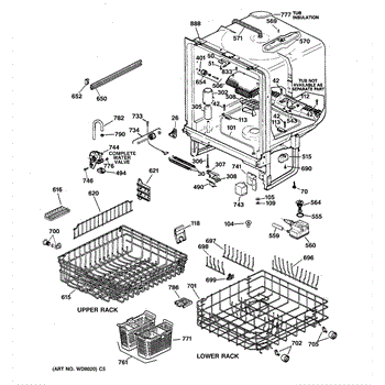 The Upper Rack is an OEM replacement part for GE dishwashers. It provides movable shelf space along the top of the dishwasher interior for washing plates, bowls, and other dishes. The shelves feature an adjustable design that accommodates various sizes and configurations of dishware. Causes of failure include normal wear and tear, accidental impacts that damage shelves or cleaning chemicals stripping away protective coatings. Symptoms of a bad upper rack can include: