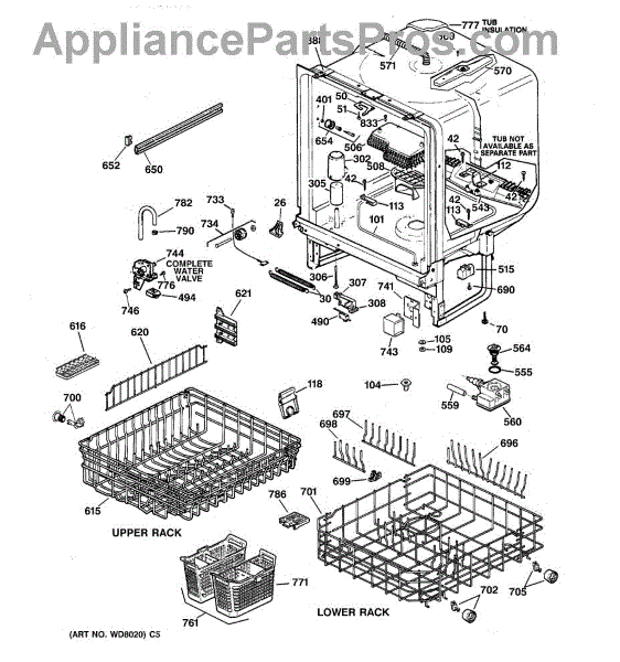 The Upper Rack is an OEM replacement part for GE dishwashers. It provides movable shelf space along the top of the dishwasher interior for washing plates, bowls, and other dishes. The shelves feature an adjustable design that accommodates various sizes and configurations of dishware. Causes of failure include normal wear and tear, accidental impacts that damage shelves or cleaning chemicals stripping away protective coatings. Symptoms of a bad upper rack can include:
