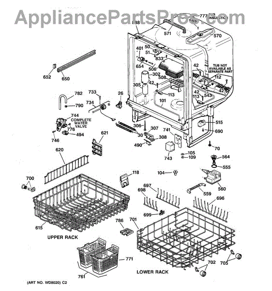 NOTE: Can use dishrack WD28X31819 with silverware basket WD28X265.