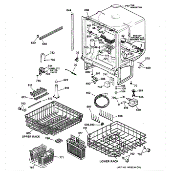 The Upper Rack is an OEM replacement part for GE dishwashers. It provides movable shelf space along the top of the dishwasher interior for washing plates, bowls, and other dishes. The shelves feature an adjustable design that accommodates various sizes and configurations of dishware. Causes of failure include normal wear and tear, accidental impacts that damage shelves or cleaning chemicals stripping away protective coatings. Symptoms of a bad upper rack can include: