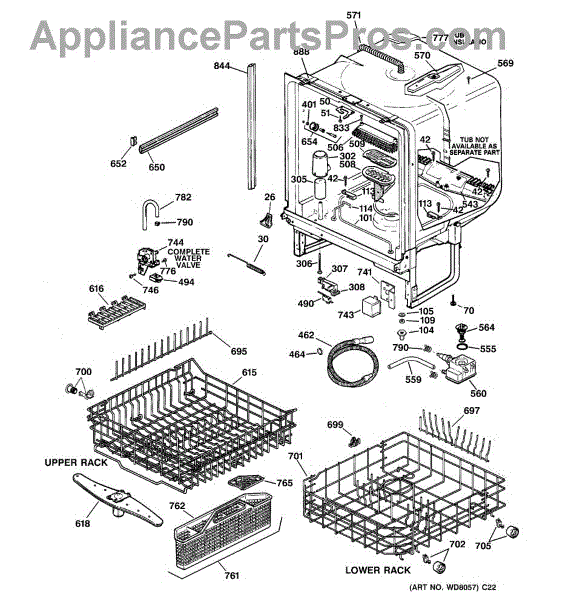 NOTE: Can use dishrack WD28X31819 with silverware basket WD28X265.