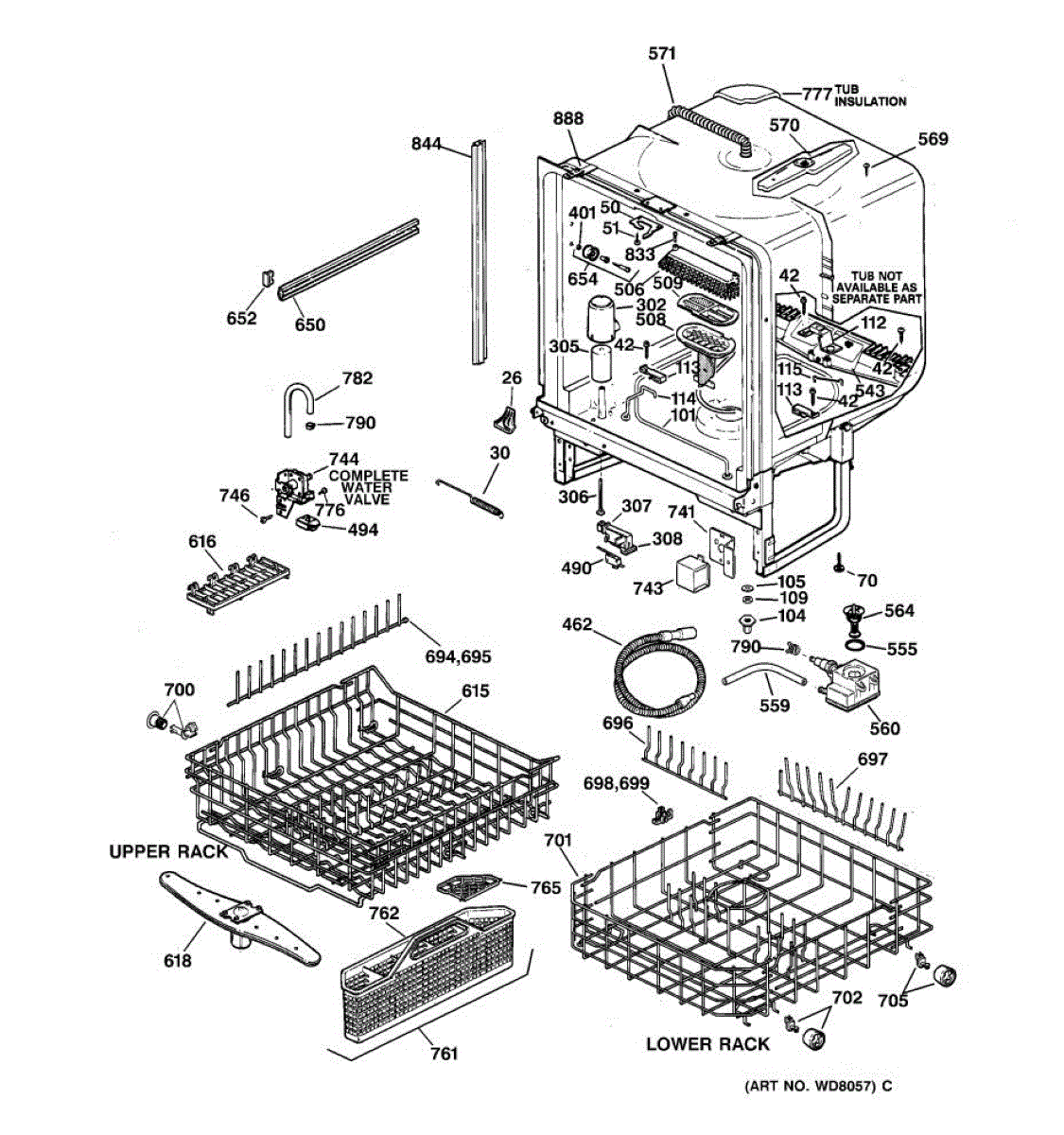 NOTE: Can use dishrack WD28X31819 with silverware basket WD28X265.