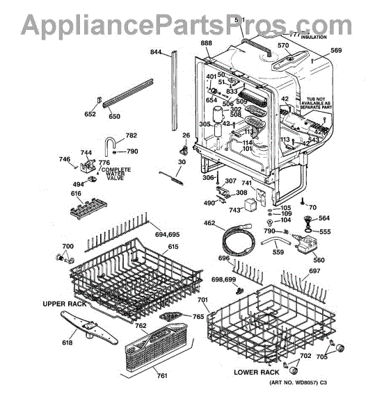 NOTE: Can use dishrack WD28X31819 with silverware basket WD28X265.