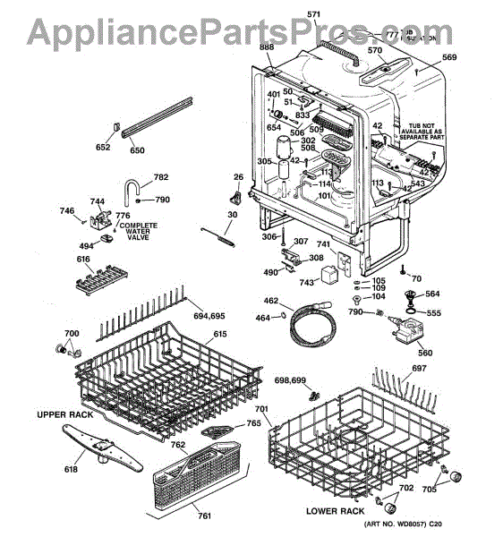 NOTE: Can use dishrack WD28X31819 with silverware basket WD28X265.
