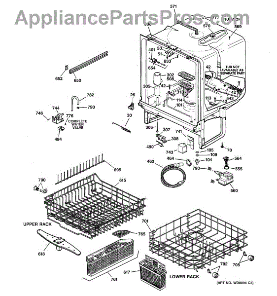 NOTE: Can use dishrack WD28X31819 with silverware basket WD28X265.