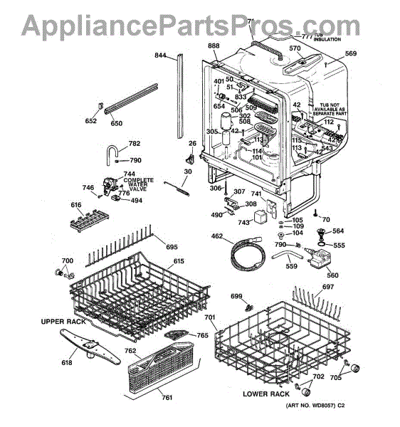 NOTE: Can use dishrack WD28X31819 with silverware basket WD28X265.