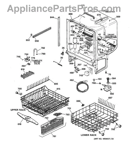 NOTE: Can use dishrack WD28X31819 with silverware basket WD28X265.