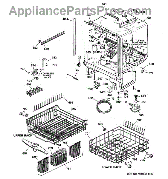 NOTE: Can use dishrack WD28X31819 with silverware basket WD28X265.