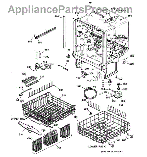 NOTE: Can use dishrack WD28X31819 with silverware basket WD28X265.