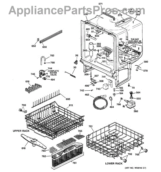 NOTE: Can use dishrack WD28X31819 with silverware basket WD28X265.