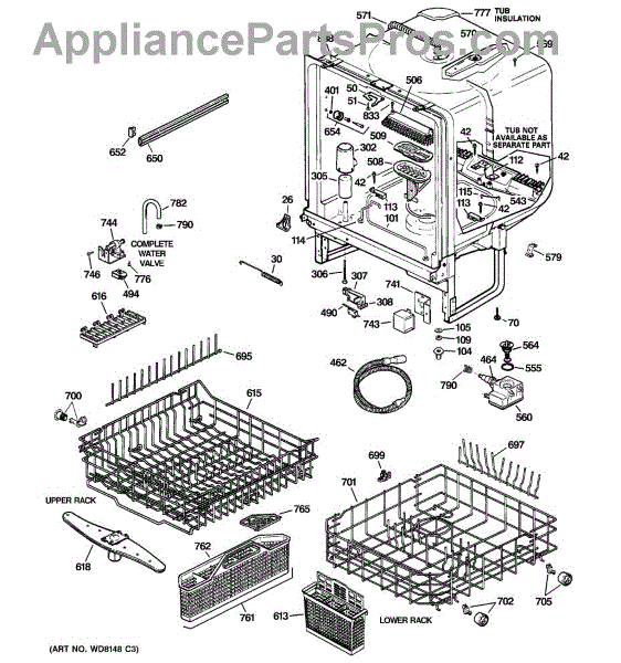 NOTE: Can use dishrack WD28X31819 with silverware basket WD28X265.