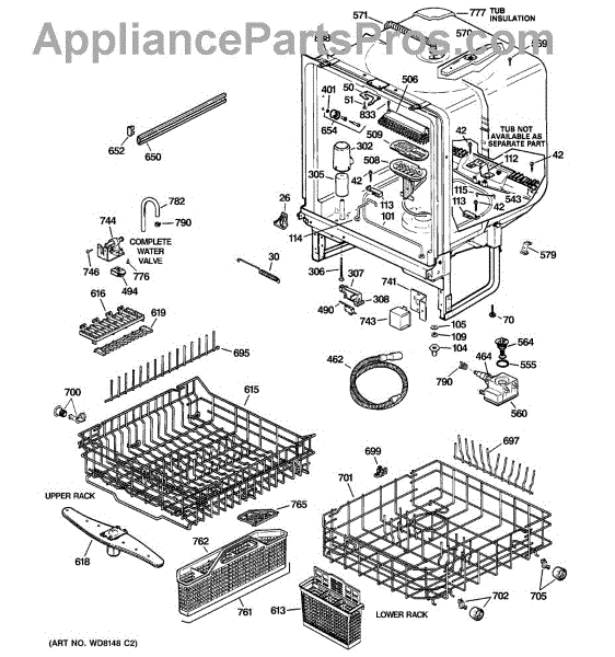 NOTE: Can use dishrack WD28X31819 with silverware basket WD28X265.