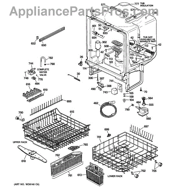 NOTE: Can use dishrack WD28X31819 with silverware basket WD28X265.
