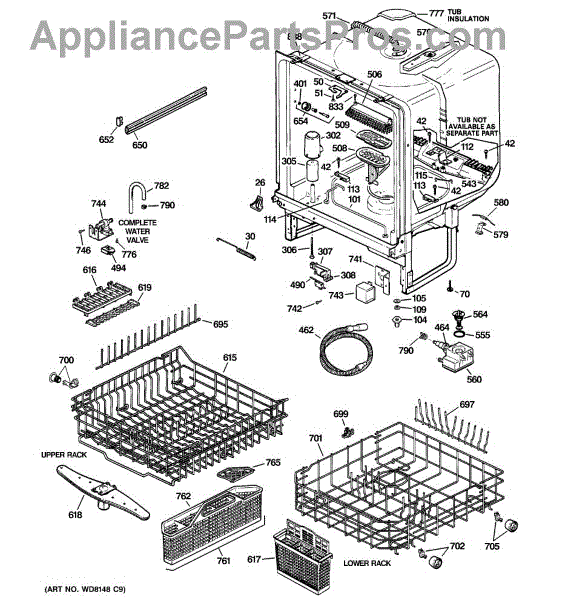NOTE: Can use dishrack WD28X31819 with silverware basket WD28X265.