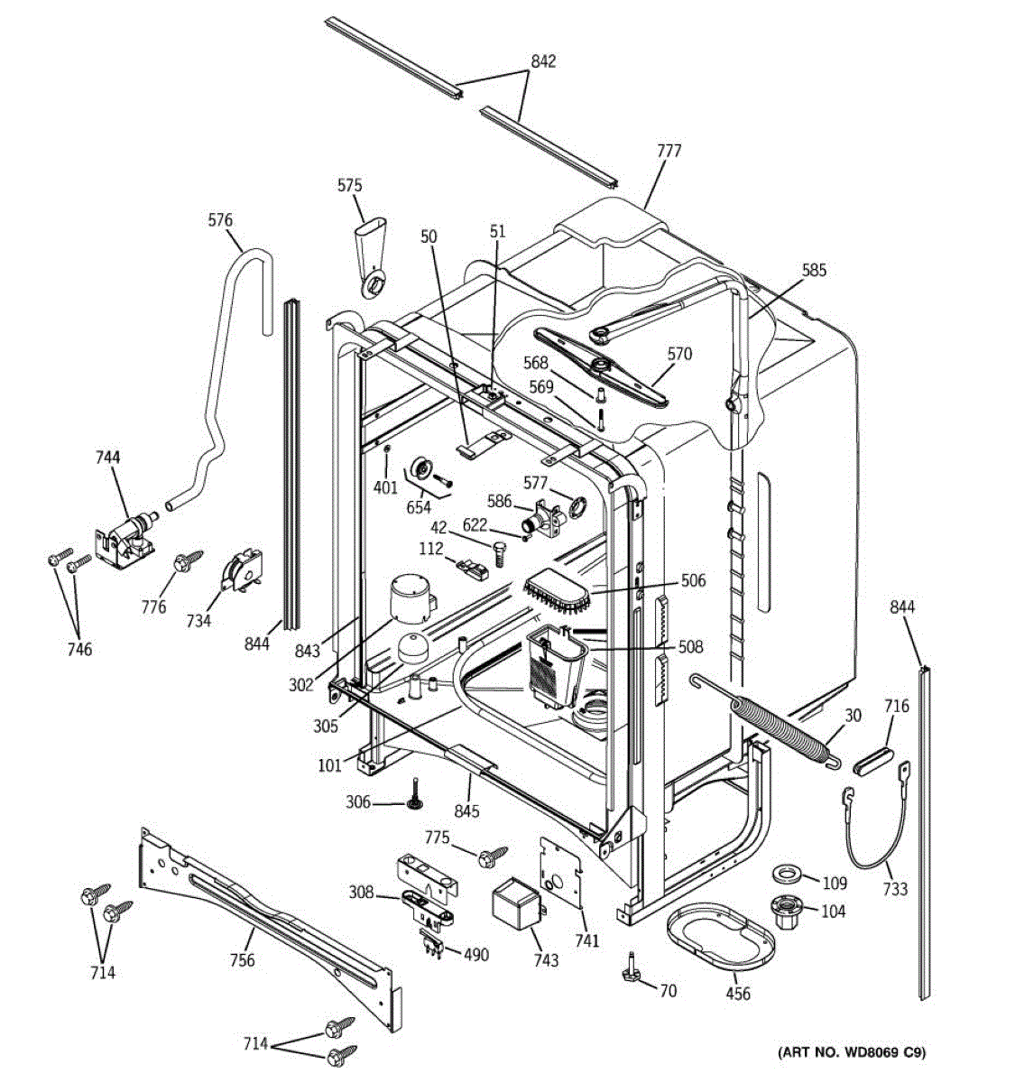 Dishwasher tub gasket creates a watertight seal between the tub and door. Replace if you notice water leaking or steam escaping. Confirm fit by model.
