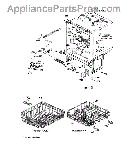 • Carries water from the inlet valve to the dishwasher tub during fill cycles