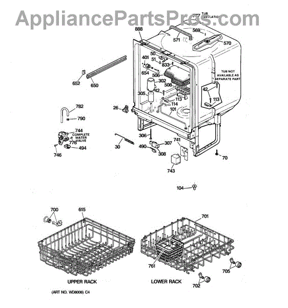 The Lower Dishrack is an OEM part for GE dishwashers. It provides a sturdy shelf for placing pots, pans, plates, and other dishware on the bottom level of the dishwasher interior. The lower dishrack supports dish loads, holding them securely in place during the wash cycles.