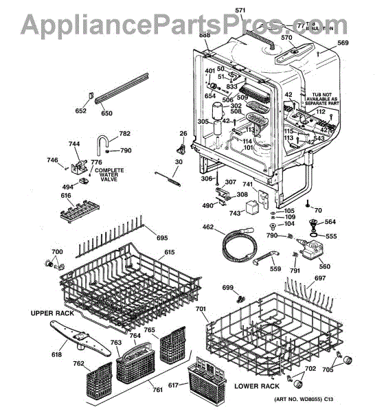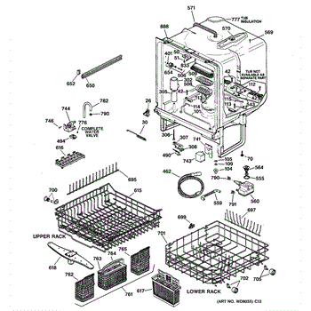 NOTE: Can use dishrack WD28X31819 with silverware basket WD28X265.