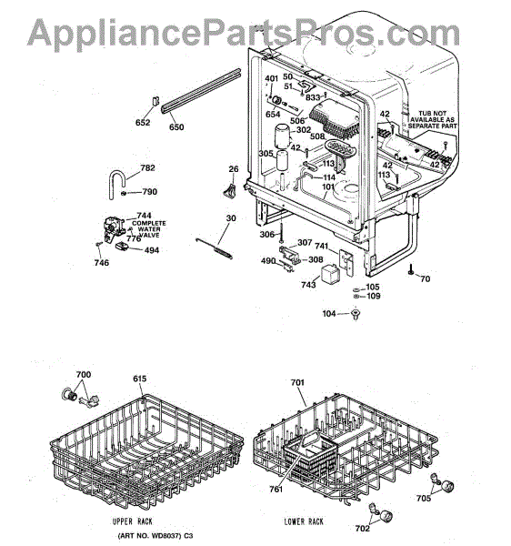 The Tub Corner Baffle is an OEM part for GE dishwashers. It is strategically placed at the corners of the dishwasher tub to prevent water from leaking out during operation. For the left side use WD8X228. Color: Black.