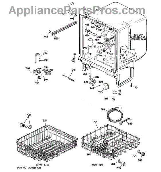 • Carries water from the inlet valve to the dishwasher tub during fill cycles