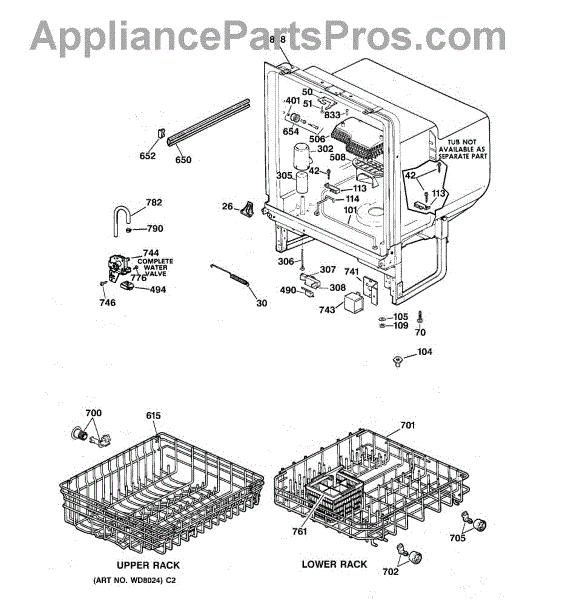 • Works with the dishwasher's fill and wash functions to maintain normal operation