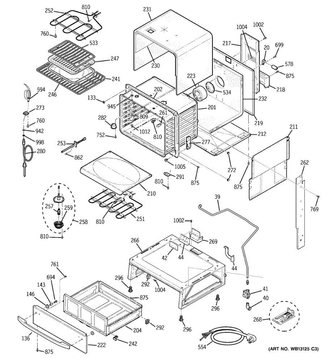 The Rear Door Support is an OEM replacement part for GE ranges. Located at the base of the range, this bracket provides weight-bearing support for the lower oven drawer. It facilitates smooth extension and retraction of the drawer. Causes of faulty support can include cracks or fractures developing over extended use, worn joints unable to sustain drawer weight, or misalignment from repeated opening/closing stress. Symptoms of a bad support include: