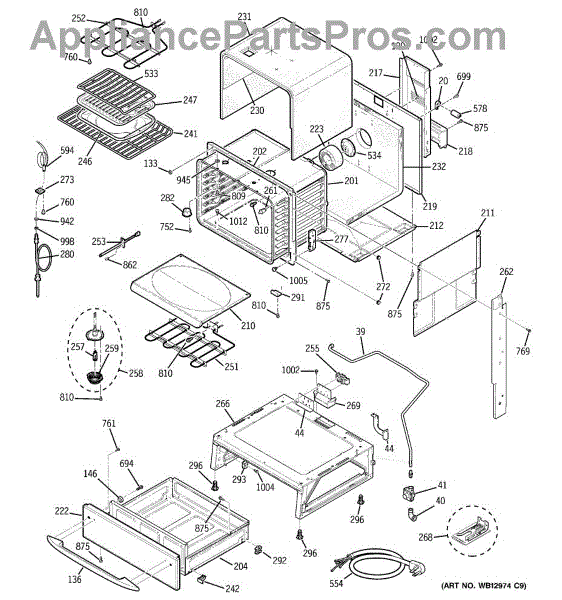 The Broiler Assembly is an OEM replacement part for GE range. Located inside the oven, it houses the heating elements responsible for the broil cooking function. Causes of a bad broiler assembly can include cracked or burnt-out heating elements that no longer ignite, damage from accidentally being cleaned with abrasive chemicals, or warping of metal components from overheating. Symptoms of a bad broiler assembly include: