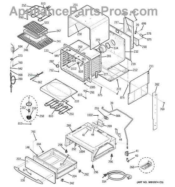 The Broiler Assembly is an OEM replacement part for GE range. Located inside the oven, it houses the heating elements responsible for the broil cooking function. Causes of a bad broiler assembly can include cracked or burnt-out heating elements that no longer ignite, damage from accidentally being cleaned with abrasive chemicals, or warping of metal components from overheating. Symptoms of a bad broiler assembly include: